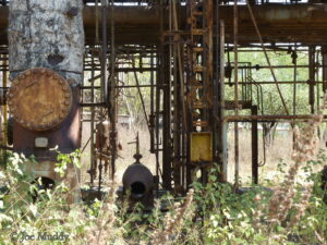 Plants grow around abandoned methyl isocyanate unit, Union Carbide factory site, Bhopal, c. 2009. Photo by Joe Muddy.